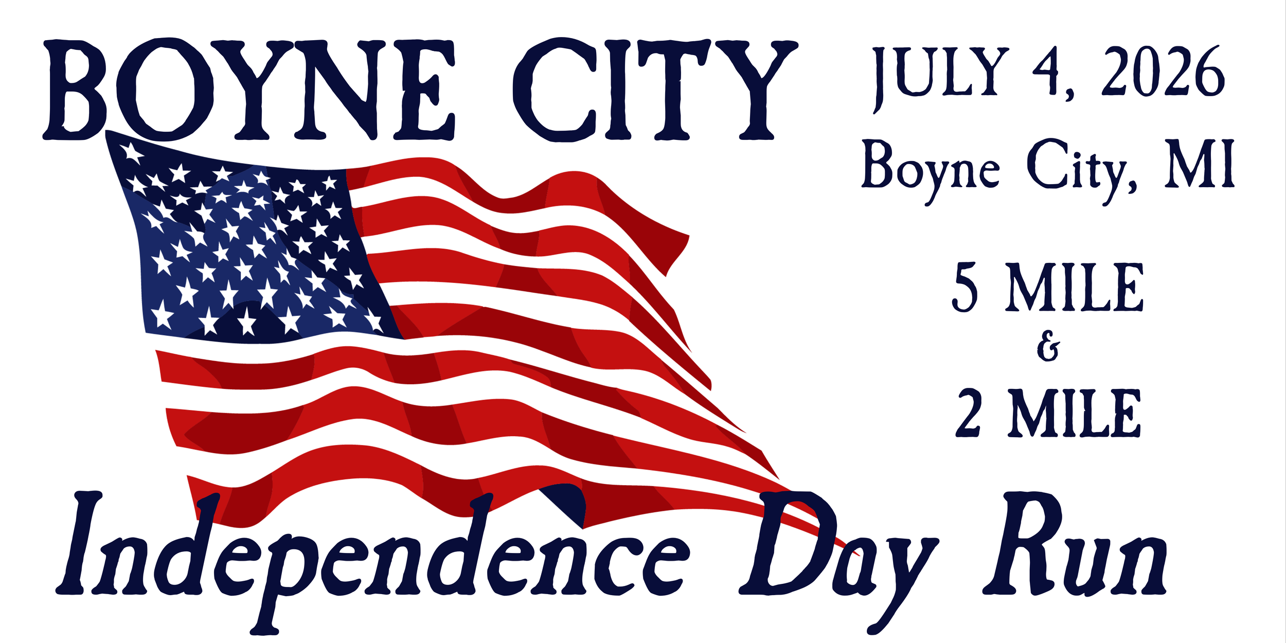 A small town race done in a BIG way with as many as 1,200 participants in recent years, the Boyne City Independence Day run is a low cost and family fun event offering professionally timed 5 Mile and 2 Mile events. Finisher medals, free online finisher photos/video, chip start, age group awards and a true Dig Deep finish line will once again make this race exciting for 2026. Proceeds from the event go toward the amazing fireworks show that we strongly suggest participants stick around for!